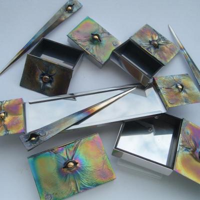 20132013Tál betétekkelLaczák Géza2013Acél karkötők kisplasztikávalLaczák Géza2013Acél karkötők aranyozott gömbbelLaczák Géza2013TörésvonalLaczák Géza2013Töredék Laczák Géza2013Osztódás Laczák Géza2013Kockadobozok Laczák Géza2013Fordulat Laczák Géza2013Acél nyakék és fülbevalók Laczák Géza