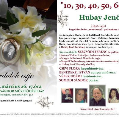 20172017.03.26.Évfordulók estje - Hubay Jenő tiszteletéreSzecsődi FerencSzeged2017–2020elnök, Magyar Hangszerész Szövetség, Budapest