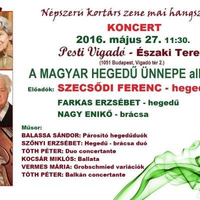 20162016.05.28.Mesterhangszerek mesterkézben - a Magyar hegedű ünnepe alkalmából, 2016. május 28.Szecsődi FerencBudapest2016.05.25.Népszerű kortárs zene mai hangszereken - koncert a Magyar hegedű ünnepe alkalmából, 2016. május 27.Szecsődi FerencBudapest